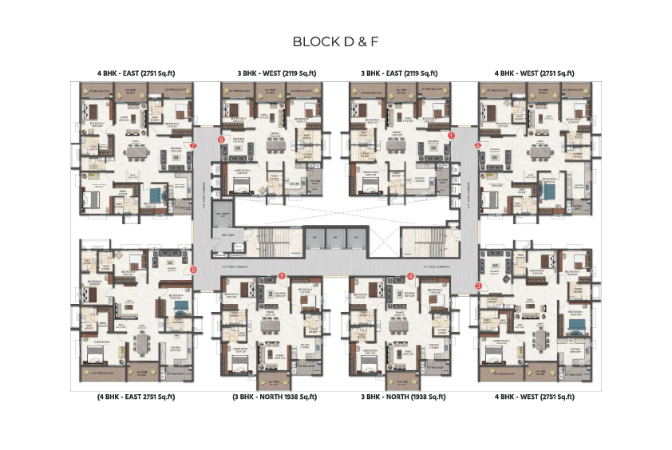 - Lifts: High-speed automatic passenger lifts. One service lift per block