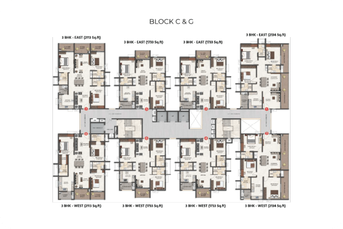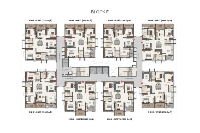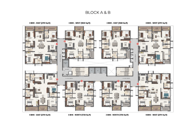 - Lifts: High-speed automatic passenger lifts. One service lift per block